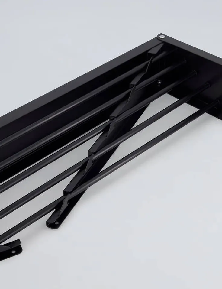 🌬️ يمكن فتحها بسهولة عند الحاجة لنشر الملابس، ثم طيّها لتبقى ملاصقة للجدار دون أن تشغل أي مساحة إضافية.