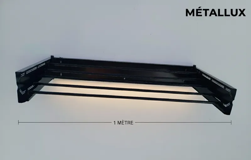 🧺 نشافة ملابس قابلة للطي seche lenge 🪜 طـــــــول 1 متـــــــــر 🪜 تصميم معدني قوي وسهل الاستخدام 🏠 تثبت على الحائط وتفتح وتغلق بسهولة 💧 مقاومة للصدأ ومناسبة للاستخدام داخل المنزل أو في الشرفة ✨ أنيقة، عملية، وتوفر المساحة وتساعدك على تنظيم الغسيل بكفاءة
